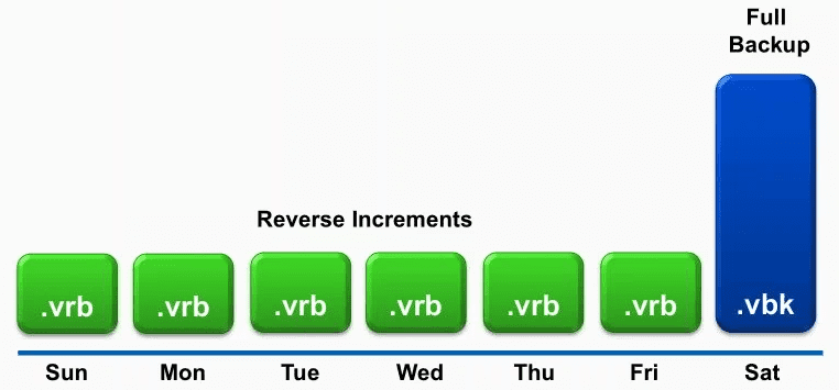 Veeam utilise une approche de sauvegarde incrémentielle pour économiser de l’espace de stockage. Il génère trois types de fichiers afin de stocker les données sauvegardées :